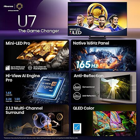 $1399.99: 85″ Hisense U7 Mini-LED ULED 4K UHD Google Smart TV (85U75QG, 2025 Model) at Amazon