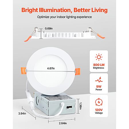 $37: 12-Pack VEVOR 4" LED Recessed Ceiling Light