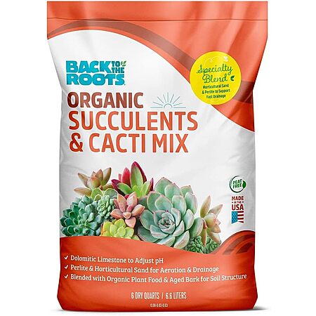 $6.99: 6-Qt Back to the Roots 100% Organic Succulent & Cacti Mix at Amazon