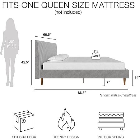$93.59: Mr. Kate Daphne Upholstered Queen Bed Frame with Headboard, Queen, Light Gray Velvet at Amazon