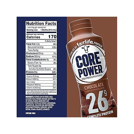 Core Power High Protein (26g) Shake, Chocolate, 14 fl oz Free Shipping with Prime $1.99