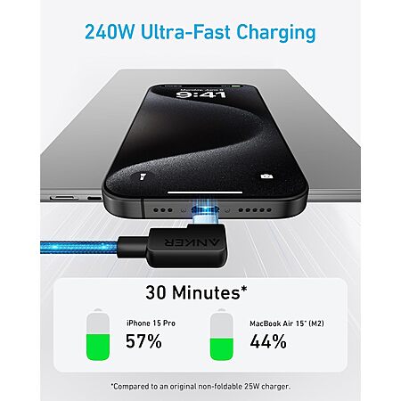 AnkerDirect via Amazon[amazon.com] has 2-Pack 6' Anker 240W USB-C 90-Degree Right Angle Braided Charging Cable (Black) for $9.99. Shipping is free with Prime or on $35+ orders.