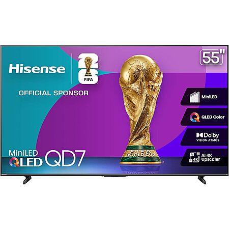 $349.99: 55″ Hisense QD7 Series Mini-LED 4K UHD Smart Fire TV (55QD7QF, 2025 Model) at Amazon