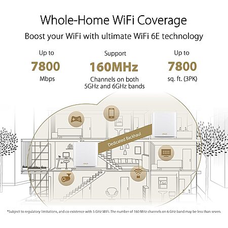 - Next-Gen WiFi Standard: Wi-Fi 6E Tri-band mesh WiFi system boosts speeds up to 7800 Mbps, with coverage up to 5500 square feet