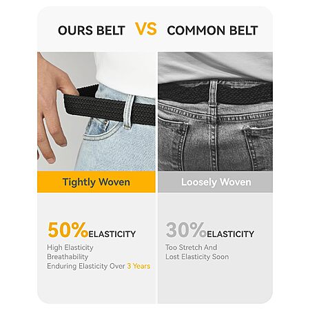 Braided Elastic Stretch Belts for Men (CHAOREN) - 1 3/8" thick - From $6.50