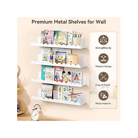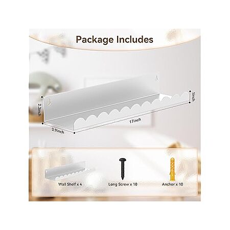 4-Pack 17" Metal Floating Shelves w/ Scalloped Front Design (White) $14.99 + Free Shipping w/ Prime