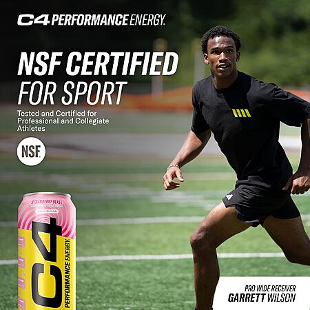 Cellucor C4 Performance Energy Drink | Strawberry Blast | Zero Sugar Carbonated Preworkout Energy | 200mg Caffeine with Beta Alanine | 16 Fl Oz (12 Pack) $16.48