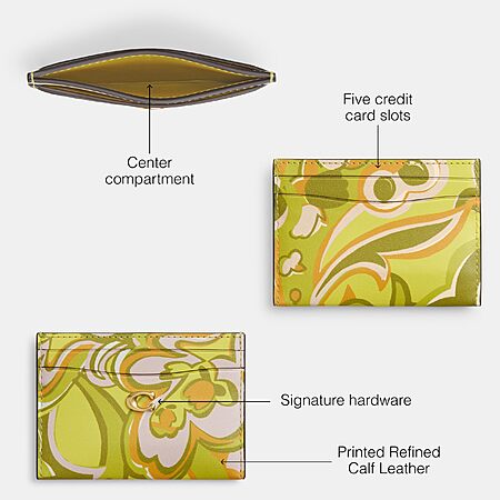 COACH Women's Essential Card Case w/ Paisley Print (Yellow Green) $36.75 + Free Shipping