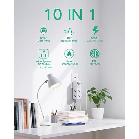 6-outlet Mifaso 1800j Surge Protector / Outlet Extender with Rotating Plug & 4 USB Ports $8 @ Amazon