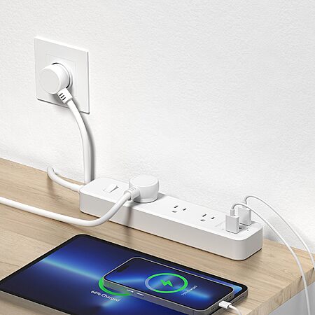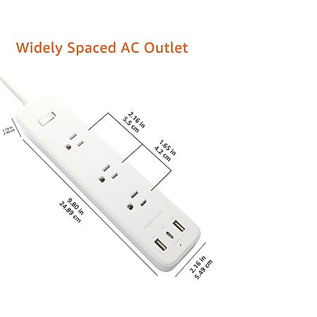 Model: Amazon Basics Rectangle Power Strip 3 Outlet 3 USB Ports, 1 USB-C and 2 USB-A, 5 ft Extension Cord, for Home, Office, Travel, White