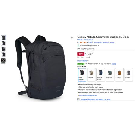 "$20 Amazon credit when you spend $100" promotion [amazon.com], which effectively makes the total cost of the bag $84.95 before taxes.