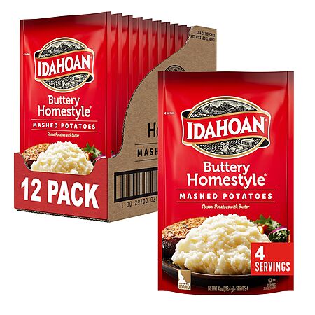 Model: Idahoan Buttery Homestyle Mashed Potatoes, Naturally Gluten-Free, 100% Real Idaho Potatoes, 4 servings per bag, 4 ounce (Pack of 12)