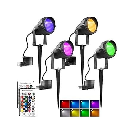 - 2. [Timing & memory landscape lights ] : This outdoor spot light have timer, can set timing for 4 H / 6 H / 8 H, it will auto on/off. And have timer off button to turn off the timing. This landscape uplights will remember and show the last color or mode when power on.