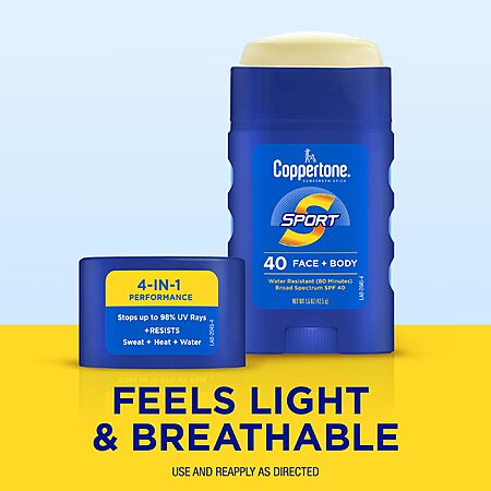 1.5-Oz Coppertone Sport SPF 40 Face & Body Sunscreen Stick $3.14 w/ S&S + Free Shipping w/ Prime or on $35+