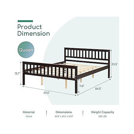 Airdown Queen Size Bed Frame w/ Wood Slat Support $54.99 + Free Shipping w/ Prime