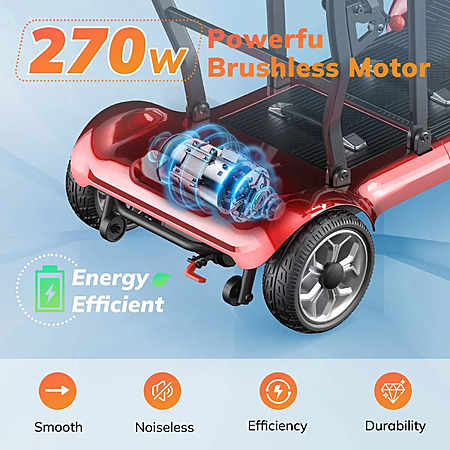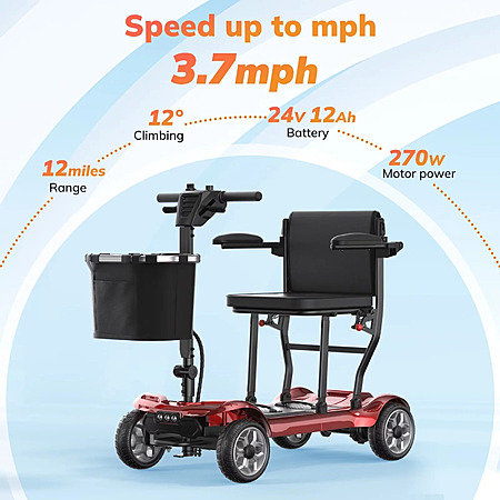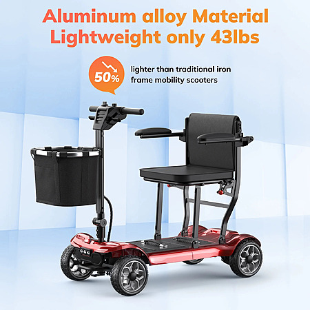 SACVON Ultra Lightweight Mobility Scooter for Seniors,43Lbs Aluminum Electric Wheelchair,Lithium Battery,Suitable for Travel,Red $570.29