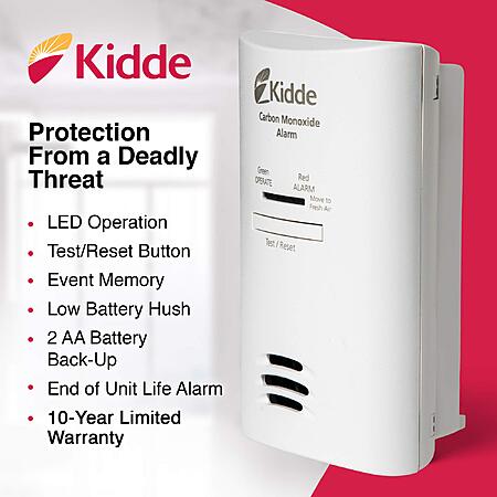 Kidde Carbon Monoxide Detector, Plug in Wall with AA Battery Backup, Test-Hush Button @ Amazon $27.47