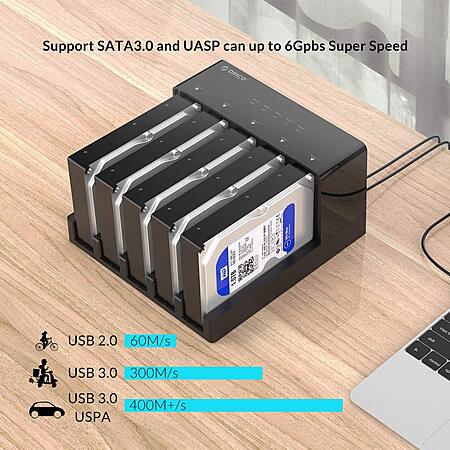 ORICO USB 3.0 5 Bay Hard Drive Docking Station with Offline Cloning for 2.5/3.5 SATA HDD SSDs Max Up to 90TB Plug and Play Flat-Down-6558US3-C for $81.89 with code - 6558US3C