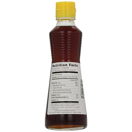 100% pure sesame oil. This brand is what I always buy myself, but I get one of these bottles and refill it with a 56 oz can.