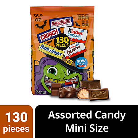Butterfinger, CRUNCH, Baby Ruth, 100 Grand, Kinder Bueno, Kinder Chocolate, Mini Fun Size Candy Bars, 130 Count, 25.9 oz $20 earn $4 Walmart Cash Free Ship WMT+