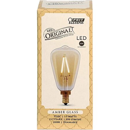 $4: Feit Electric Vintage Exposed Filament Amber Glass LED ST15 with a Candelabra E12 Base Light Bulb at Amazon