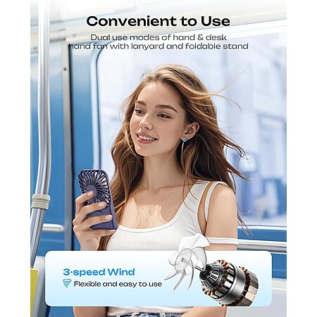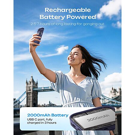 Otlonpe Rechargeable Mini Portable Handheld Fan (Blue) $6.99 + Free Shipping w/ Prime or on $35+
