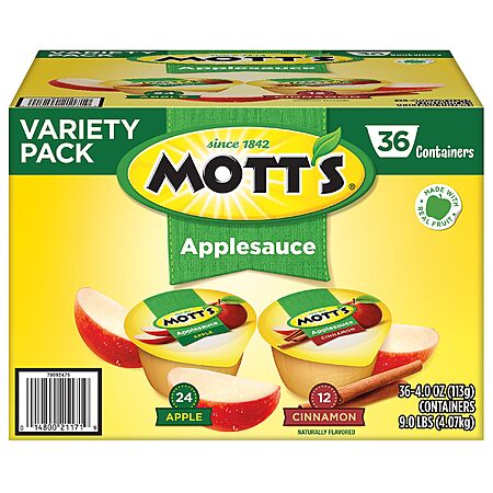36-Count 4-Oz Mott's Apple & Cinnamon Variety Pack Applesauce on sale for $8.28 - $1.66 (20%) off when you 'clip' the