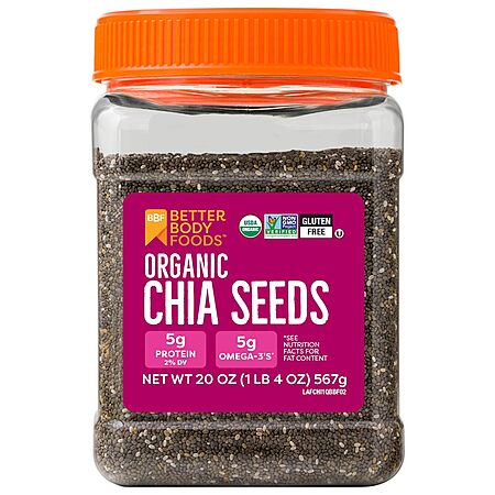 Amazon[amazon.com] has 20-Oz BetterBody Foods Organic Chia Seeds for $8.99 - 20% when you 'clip' the coupon on product page - 5% when you check out via Subscribe & Save = $6.74. Shipping is free with Prime or on $35+ orders.