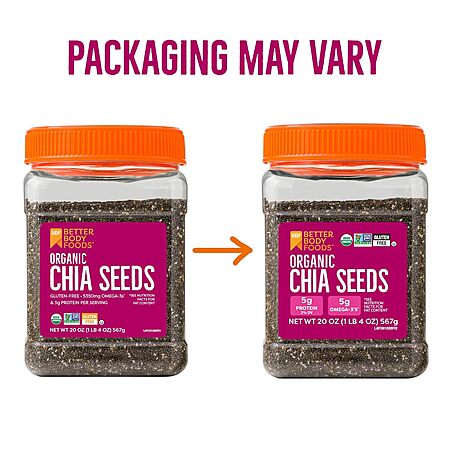 Model: BetterBody Foods Organic Chia Seeds with Omega-3, Non-GMO, Gluten Free, Keto Diet Friendly, Vegan, Good Source of Fiber, Add to Smoothies, 1.25lb, 20 oz