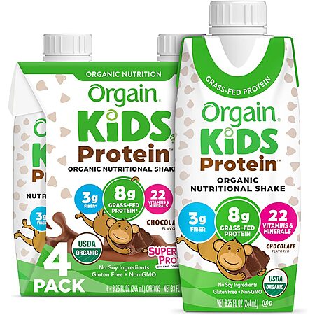 4-Pack 8.25-Ounce Orgain Organic Kids' Nutritional Protein Shake (Chocolate, Vanilla) $5.50 w/ S&S + Free Shipping w/ Prime or $35+