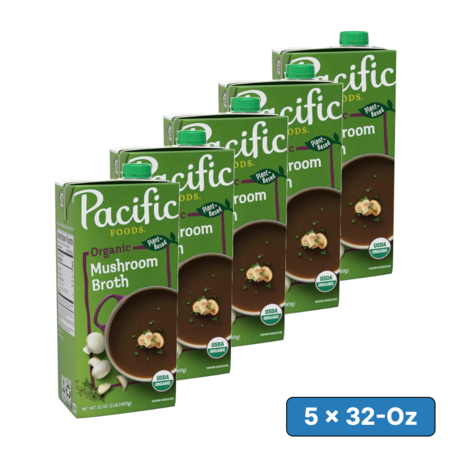 [S&S] $13.92: 5 × 32-Oz Pacific Foods Organic Mushroom Broth (Plant-Based) ($2.78 each) at Amazon