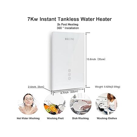 1.Instant Hot Water: The 7kW electric tankless water heater supplies instant & endless hot water of 108℉ or higher with no waiting for preheating or temperature fluctuations.