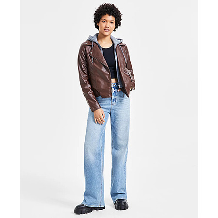 Jou Jou Juniors' Distressed Asymmetric Moto Jacket (Sizes: XS-XL) $19.66 & More + Free Pickup at Macys or Free Shipping on $39+