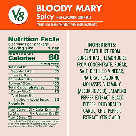 $20.43: 7 × 6-Pack 8-Oz V8 Bloody Mary Spicy Mix ($2.92 pack / 48.6¢ ea) at Amazon