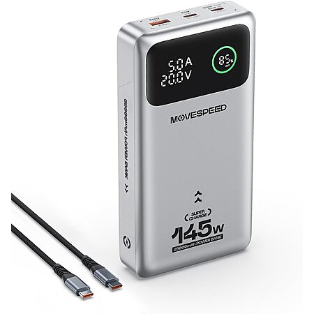MOVESPEED US via Amazon [amazon.com] has Move Speed 25000mAh 145W 3-Port Laptop Power Bank w/ 240W USB-C Cable on sale for $49.99 - $15 off when you apply promo code B3UUYWDL at checkout = $34.99. Shipping is free.