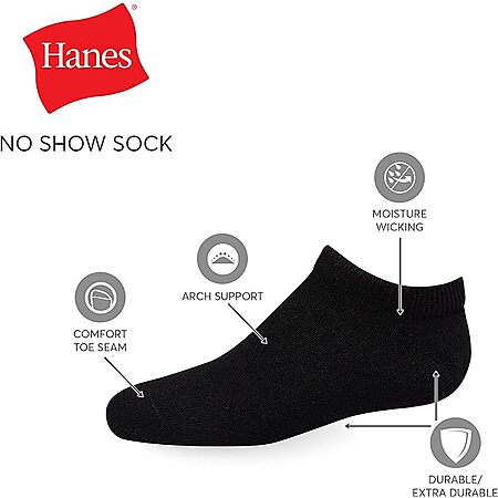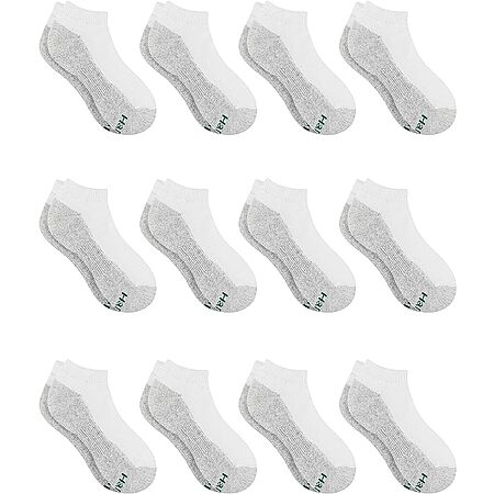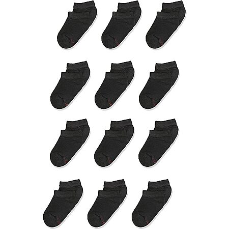 12-Pairs Hanes Boys' Double Tough Cushioned No Show Socks (size S): White $3.78, Black $4.42 + Free Shipping w/ Prime or on $35+