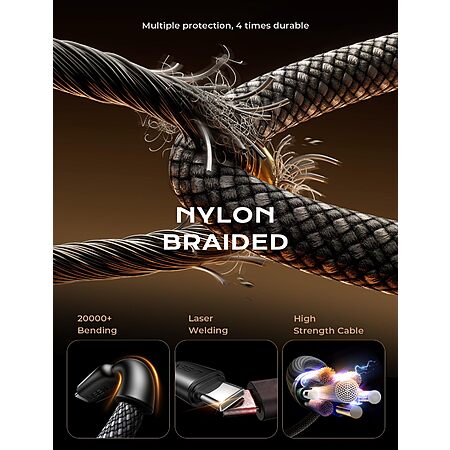 - Durability: 48-strand braided nylon with ABS connectors, withstands 10,000+ bends, eco-friendly design.