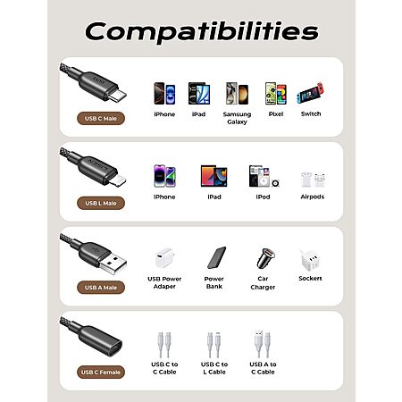 About this Item:- Fast Charging: Up to 60W (USB-C to USB-C), 27W (USB-C to Lightning), 12W (USB-A to Lightning), and 3A max for USB-A to USB-C.