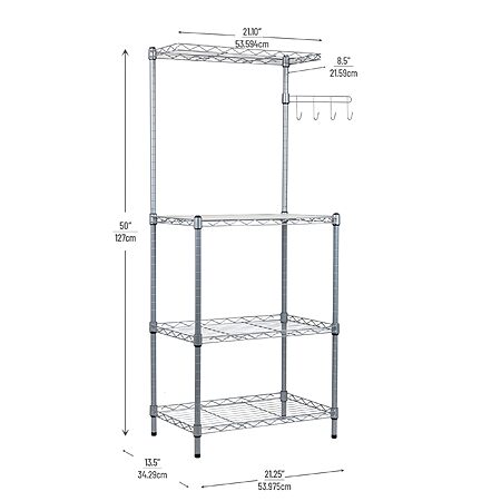 4-Tier Mind Reader Shelf Unit w/ Hooks (Silver, 21.25" L x 13.5" W x 50" H)