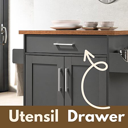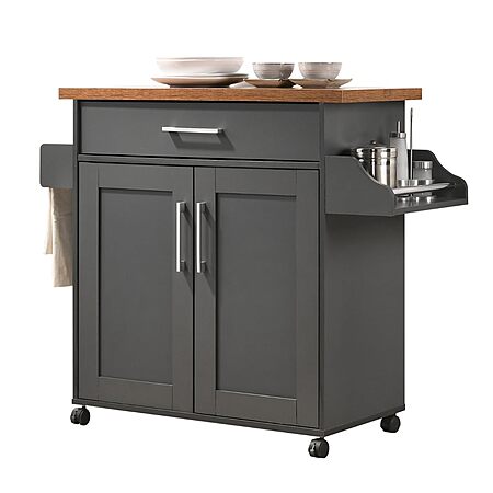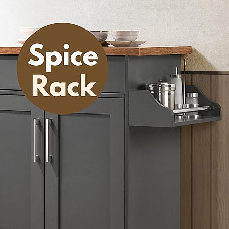 Hodedah Kitchen Island with Spice Rack, Towel Rack & Drawer (Grey w/ Oak Top)