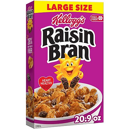 Amazon[amazon.com] has 10.9-Oz Raisin Bran Breakfast Cereal (Original) for $4 - 5% when you check out via Subscribe & Save = $3.80. Shipping is free with Prime or on $35+ orders.
