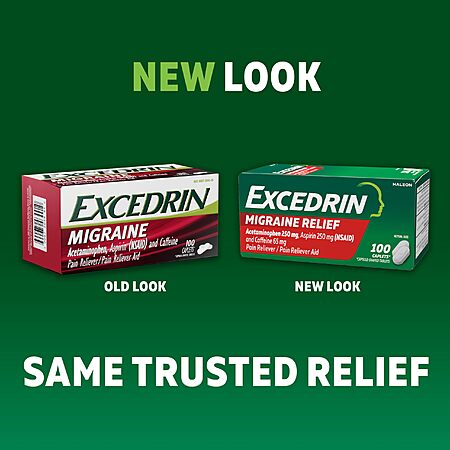 $6.8:[S&S]100 Count Excedrin Migraine Relief Caplets for Migraine Symptoms, Acetaminophen 250mg