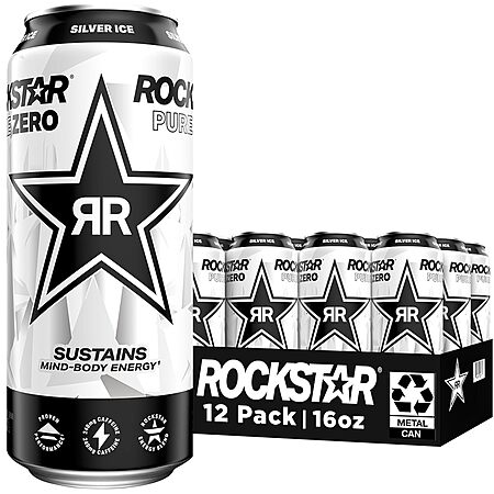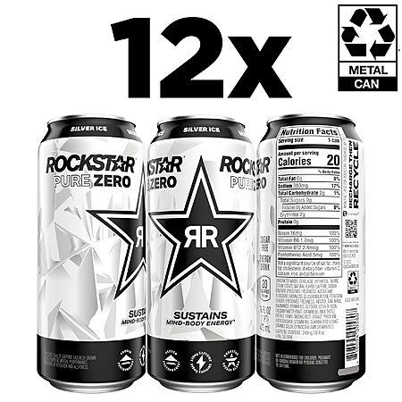 12-Count 16-Oz Rockstar Pure Zero Energy Drink w/ Caffeine & Taurine (Silver Ice) $11.06 w/ S&S + Free Shipping w/ Prime or on orders over $35