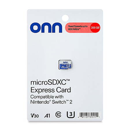 Product Description: | The onn microSDXC Express Card is a versatile and high-capacity storage solution designed to be compatible with a wide range of devices, including the Nintendo Switch 2, most smartphones, tablets, drones, cameras, and computers. With a substantial 256 GB capacity, it offers ample space for all your data storage needs. The card boasts impressive performance with up to 800 MB/s read speed and up to 600 MB/s write speed, ensuring quick and efficient data transfer. Built to withstand various environmental conditions, it is water, shock, temperature, and magnet proof, making it a reliable choice for both everyday and demanding applications. Additionally, the onn microSDXC Express Card works seamlessly with other game consoles and laptops, providing flexible and robust storage options. onn microSDXC Express Card, 256 GB Compatible with Nintendo Switch 2 and most smartphones, tablets, drones, cameras, and computers 256 GB capacity Up to 800 MB/s read speed Up to 600 MB/s write speed Water, shock, temperature, and magnet proof Also works with other game consoles and laptops |