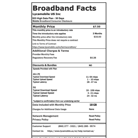 Unlimited Talk/Text 18GB Data/mo for $7.50/mo for 3 months $7.6