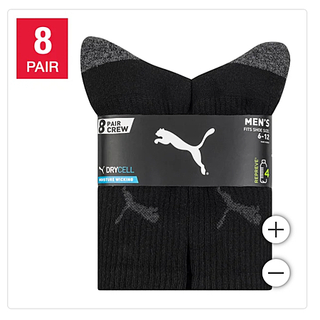 Costco Members - Extra $10 off 3 select apparel items. PUMA Men's Crew Sock, 8-pair - 1/$14, 3/$32, 5/$40, 10/$80 + free S/H, AND MORE
