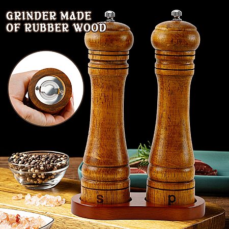 2-Piece EWUHRY Wood Salt & Pepper Grinder Set w/ Tray $7.99 + Free Shipping w/ Prime or on $35+
