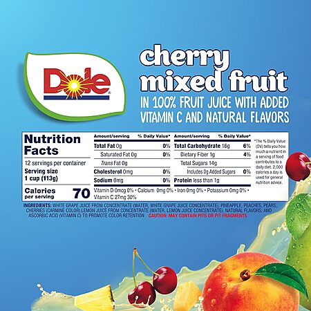 12-Pack 4-Oz Dole Fruit Bowls (Cherry Mixed Fruit) for $4.44 -