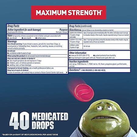 Amazon[amazon.com] has 40-Ct Mucinex Instasoothe Sore Throat Relief Medicated Drops (Elderberry & Cherry) for $2.48 - 5% when you check out via Subscribe & Save = $2.36. Shipping is free with Prime or on $35+ orders.