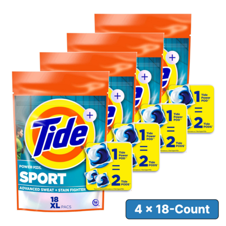 [S&S] $24.64: 4 × 18-Count Tide Power Pods Laundry Detergent Pacs with Febreze Sport ($6.16 each) at Amazon